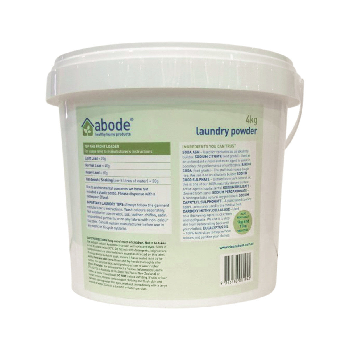 Suitable for hot and cold water washing, grey water safe and biodegradable, Abode laundry powder is designed for front & top loader washing machines, effectively cleaning clothes and removing stains leaving them fresh and clean! An extremely concentrated (low sud formula) recipe which requires only a small amount per wash (just a tablespoon), making it economical as well as safe and effective!