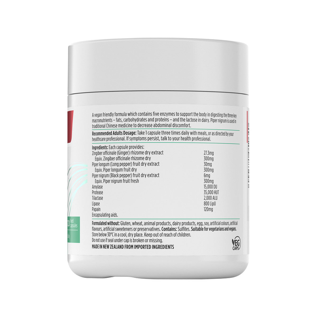 This triple action formula utilises a combination of 5 enzymes and warming herbs to support the body in breaking down macronutrients as well as the lactose in dairy. Contains Piper nigrum, used in traditional Ayurvedic and Chinese medicine to support a healthy digestive system and function. Taken regularly, Nutra-Life Digestive Enzymes may help to: